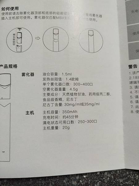 包裝裡自帶了兩顆煙彈,一顆是煙草類的,一顆則是薄荷味的,機子質感還不錯,另外朋友還多給了筆者三個口味,分別是荔枝、綠豆冰、鐵觀音,此煙彈是棉芯的感受,煙彈和主機是用卡扣的方式,吸阻上算是稍稍偏緊,煙霧有點微溫,筆者喜歡冷煙霧的所以....即然是棉芯自然有著棉芯的通病,放置一段時間拿起來的第一口就是啪的一聲,炸油但又不會炸到嘴裡,所以這點不錯,拆封五顆煙彈,唯有一顆綠豆冰漏油,筆者覺得表現不錯,如果這年代有人要求上了高氣壓完全不能滲半滴油的,那筆者建議你不要抽電子煙了