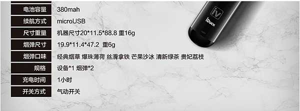 這支小煙真的很有質感,抽吸的時候是底部會亮一個很時尚的白光,機子數據則如下